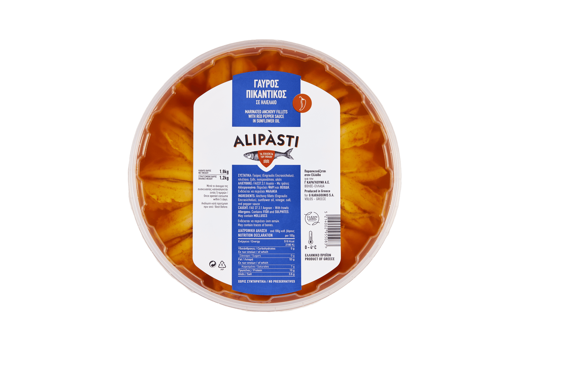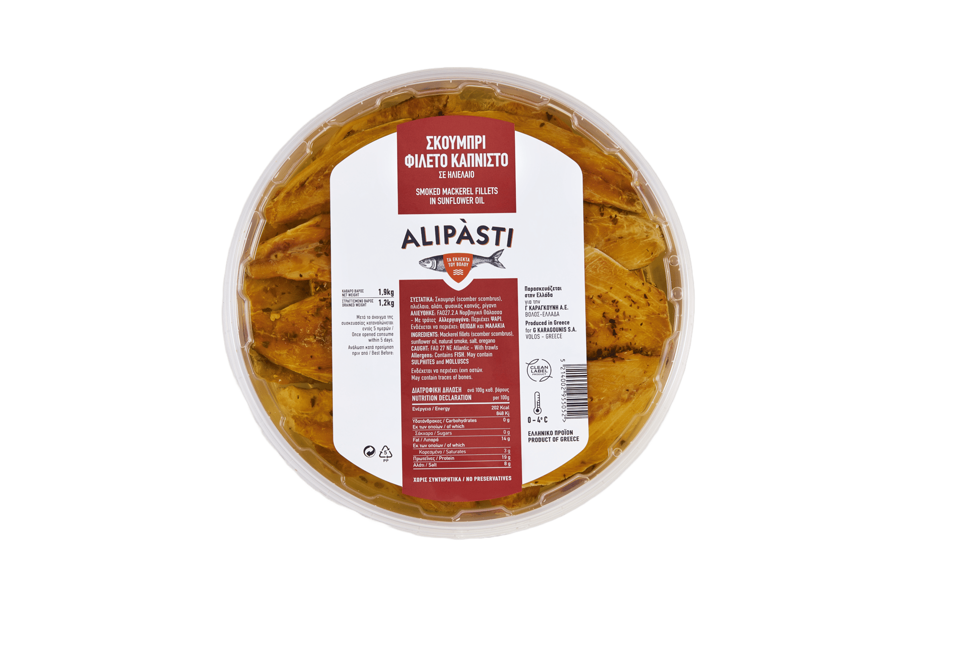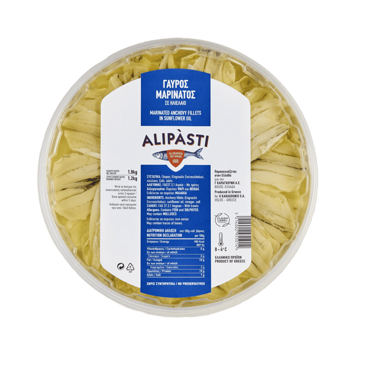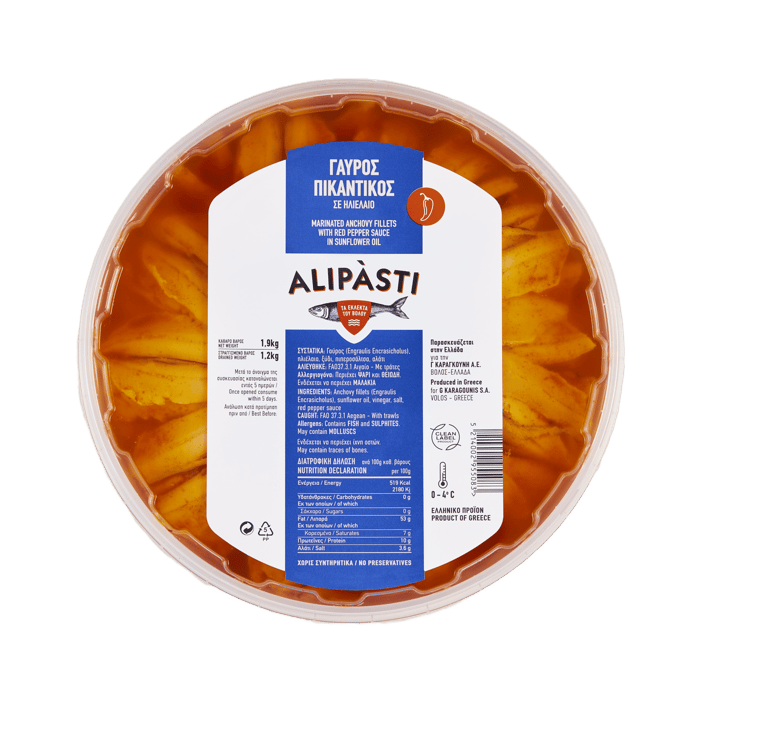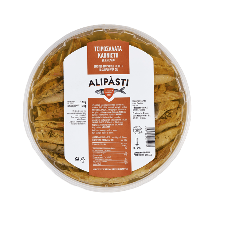 We offer a wide range of packaging options to ensure our customers can choose the one that suits them best, whether for retail or wholesale. Our clean label product line is completely free of preservatives, made with purely natural ingredients – just the essentials for a flavorful Greek meze. From small to large fish, sliced or whole, smoked or marinated, plain, spicy, or garlicky, Alipàsti brings you the finest delicacies of Volos.